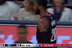 艾顿今天9个进球都是在内线 场均内线得分15分 联盟第2仅次于字母